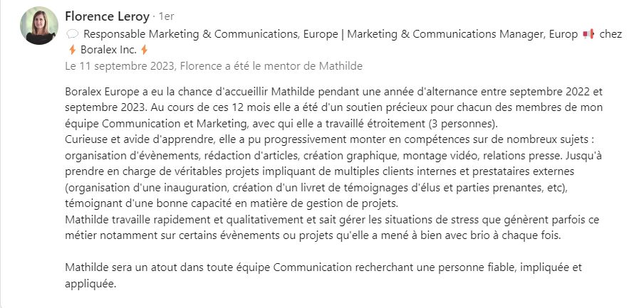 Au sein de l’entreprise internationale Boralex, pionnière des énergies renouvelables, ma polyvalence a été appréciée.
